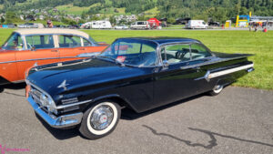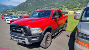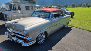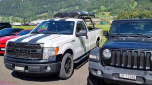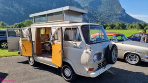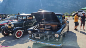 Nach dem zahlen geht es endlich zu den ausgestellten Objekten. Alles Autos, deren Besitzer sich die Mühe und Zeit genommen haben um nach Mollis zu kommen und ihre Prachtstücke zur Schau zu stellen. Autos kommen an während Andere das Gelände bereits verlassen; ich dachte es seien mehr.