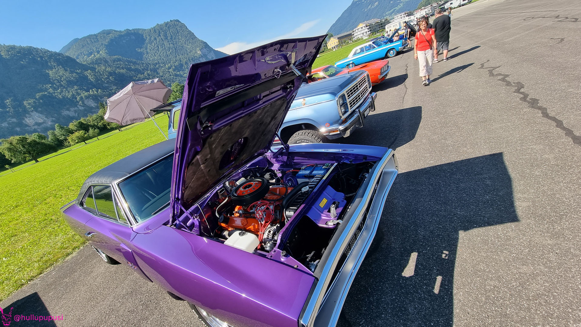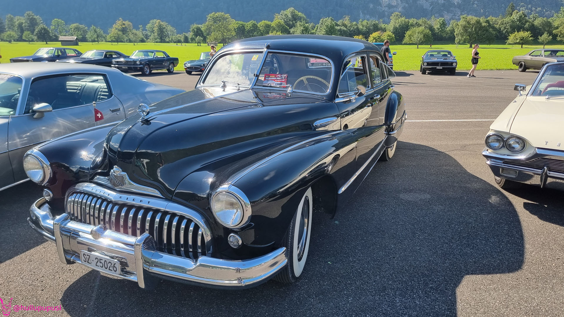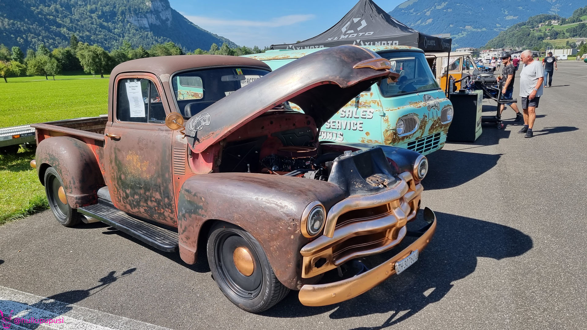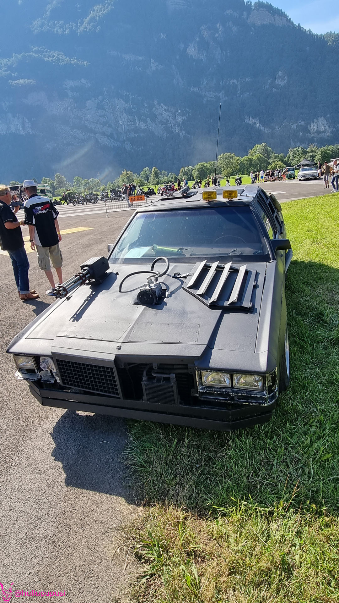 Nach dem zahlen geht es endlich zu den ausgestellten Objekten. Alles Autos, deren Besitzer sich die Mühe und Zeit genommen haben um nach Mollis zu kommen und ihre Prachtstücke zur Schau zu stellen. Autos kommen an während Andere das Gelände bereits verlassen; ich dachte es seien mehr.