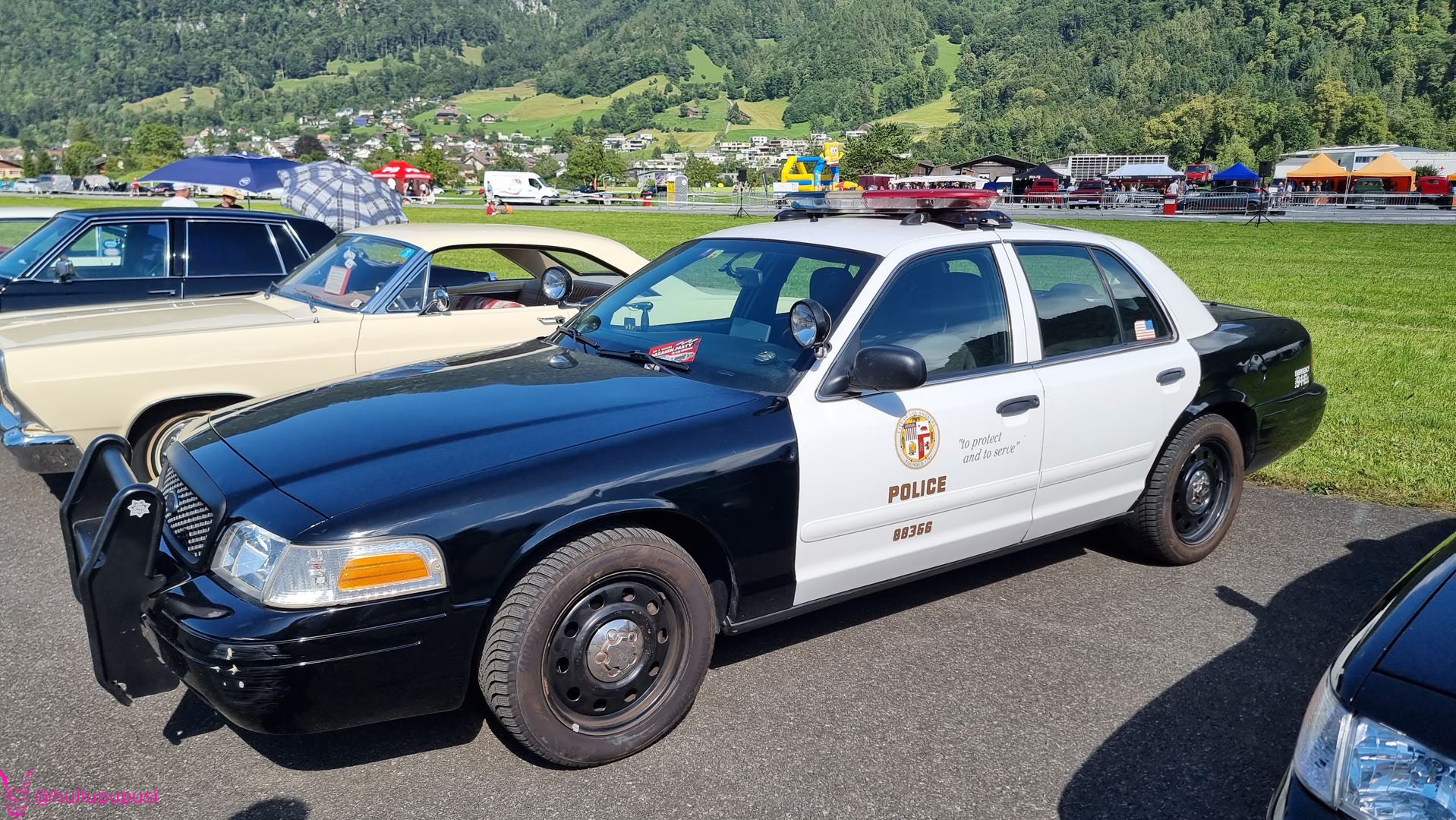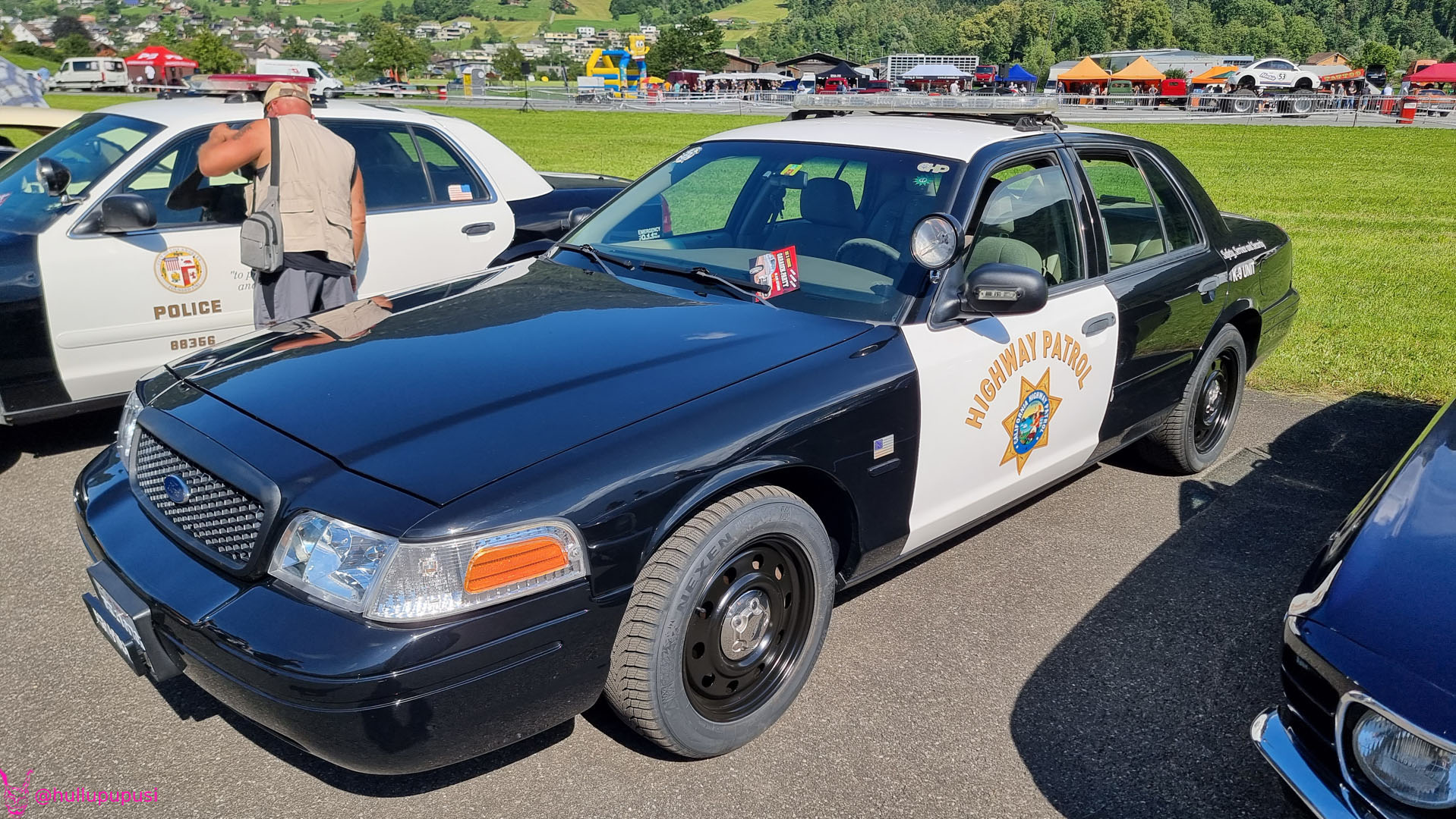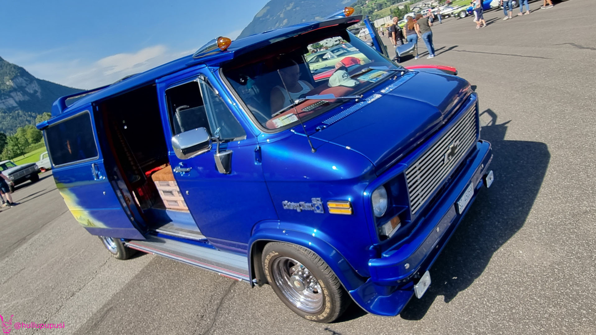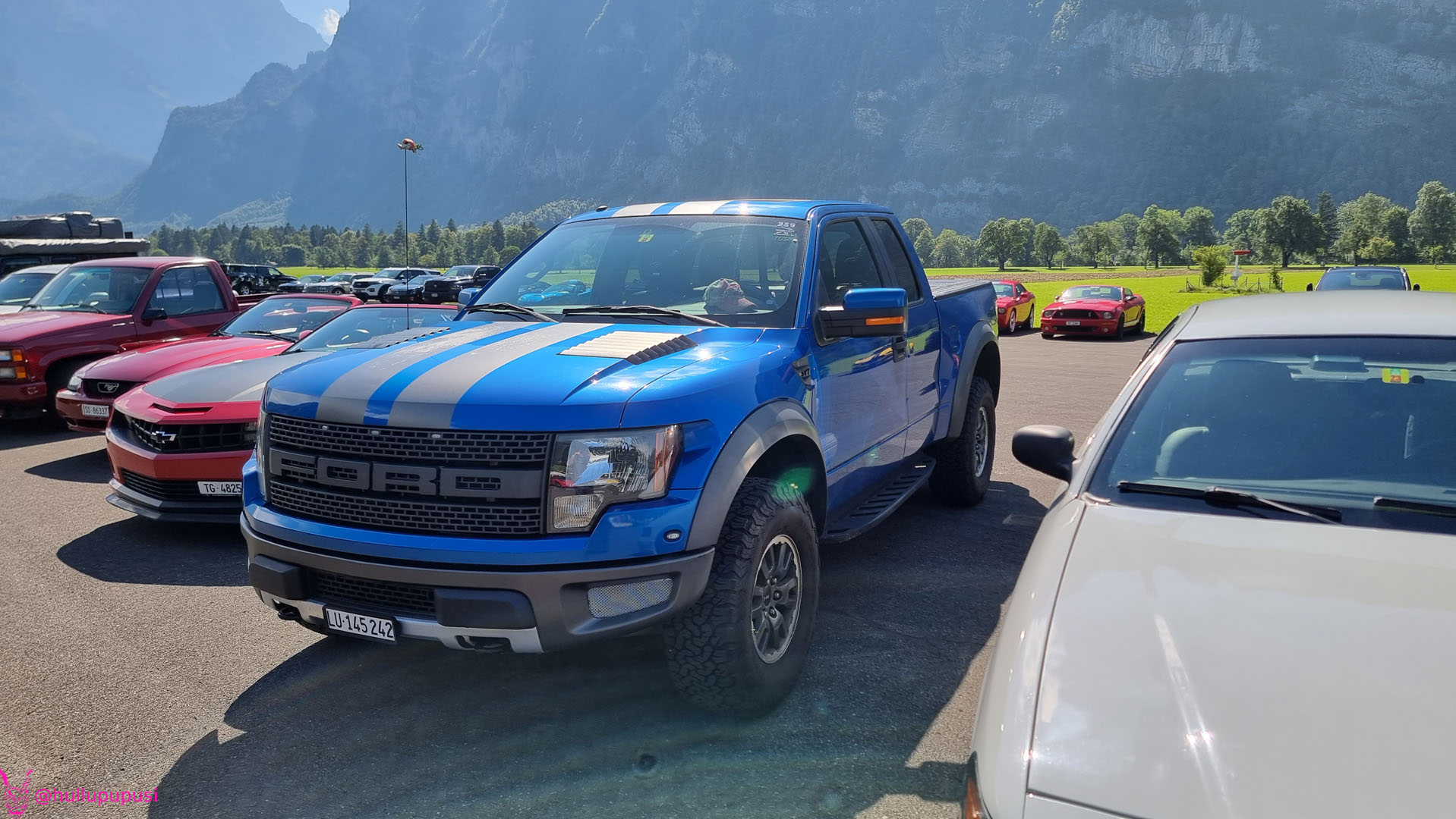 Nach dem zahlen geht es endlich zu den ausgestellten Objekten. Alles Autos, deren Besitzer sich die Mühe und Zeit genommen haben um nach Mollis zu kommen und ihre Prachtstücke zur Schau zu stellen. Autos kommen an während Andere das Gelände bereits verlassen; ich dachte es seien mehr.