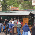 Auf einer anderen, noch kleineren Bühne spielt eine andere Band. Beim Diebsturm gibt es Getränke und der Bäcker, der in den Holzöfen Brote und Snacks backt. Die sehen sehr lecker aus. Toiletten gibt es auch, aber dafür muss schon wieder bezahlt werden; der Eintrittspreis war nicht genug um kostenlose Toiletten zur Verfügung zu stellen.