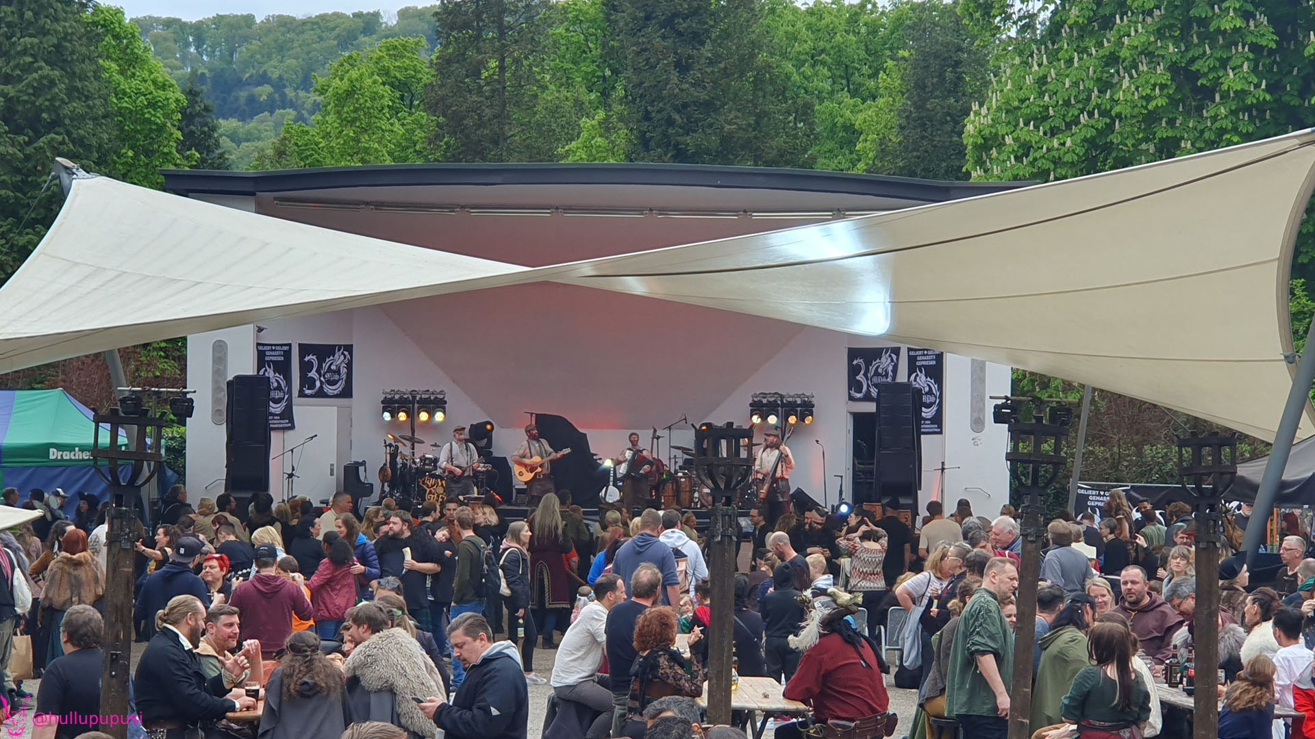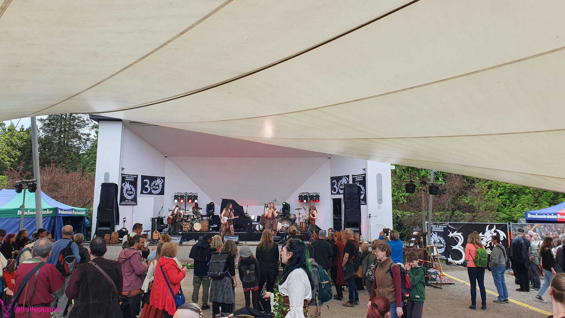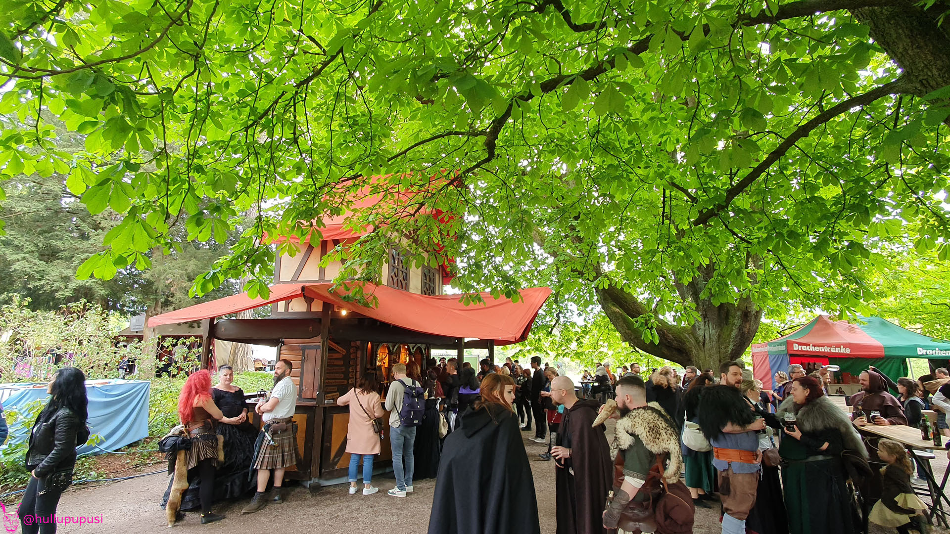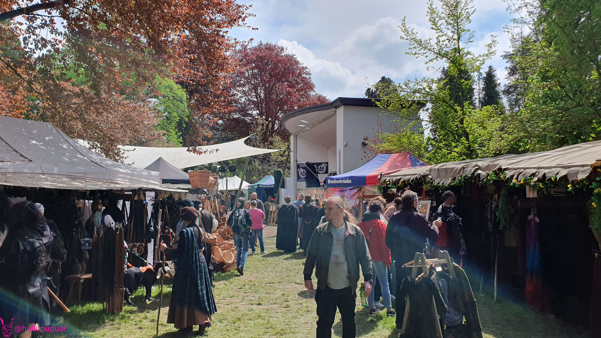 Das Ticket ist gekauft, die Security passiert und ich stehe mitten im Geschehen. Ich sehe mir die Stände an und was sie abieten. Taschen, Kleider, Gewänder, Schmuck, und alles im Mittelalter-Stil. Ich stöbere überall ein wenig, brauche aber effektiv nichts. Es gibt eine Hauptbühne, die aber nicht wirklich gross ist im Vergleich zum Castlefest.