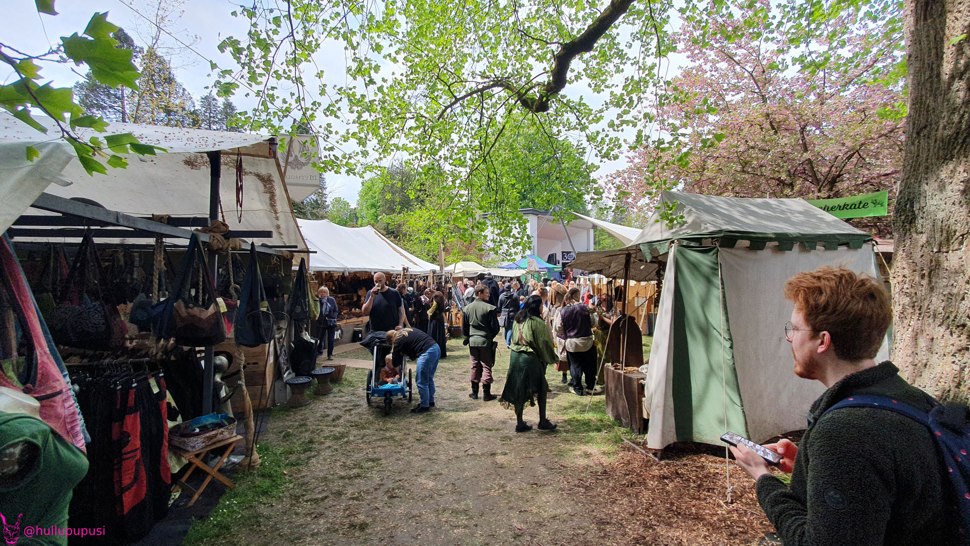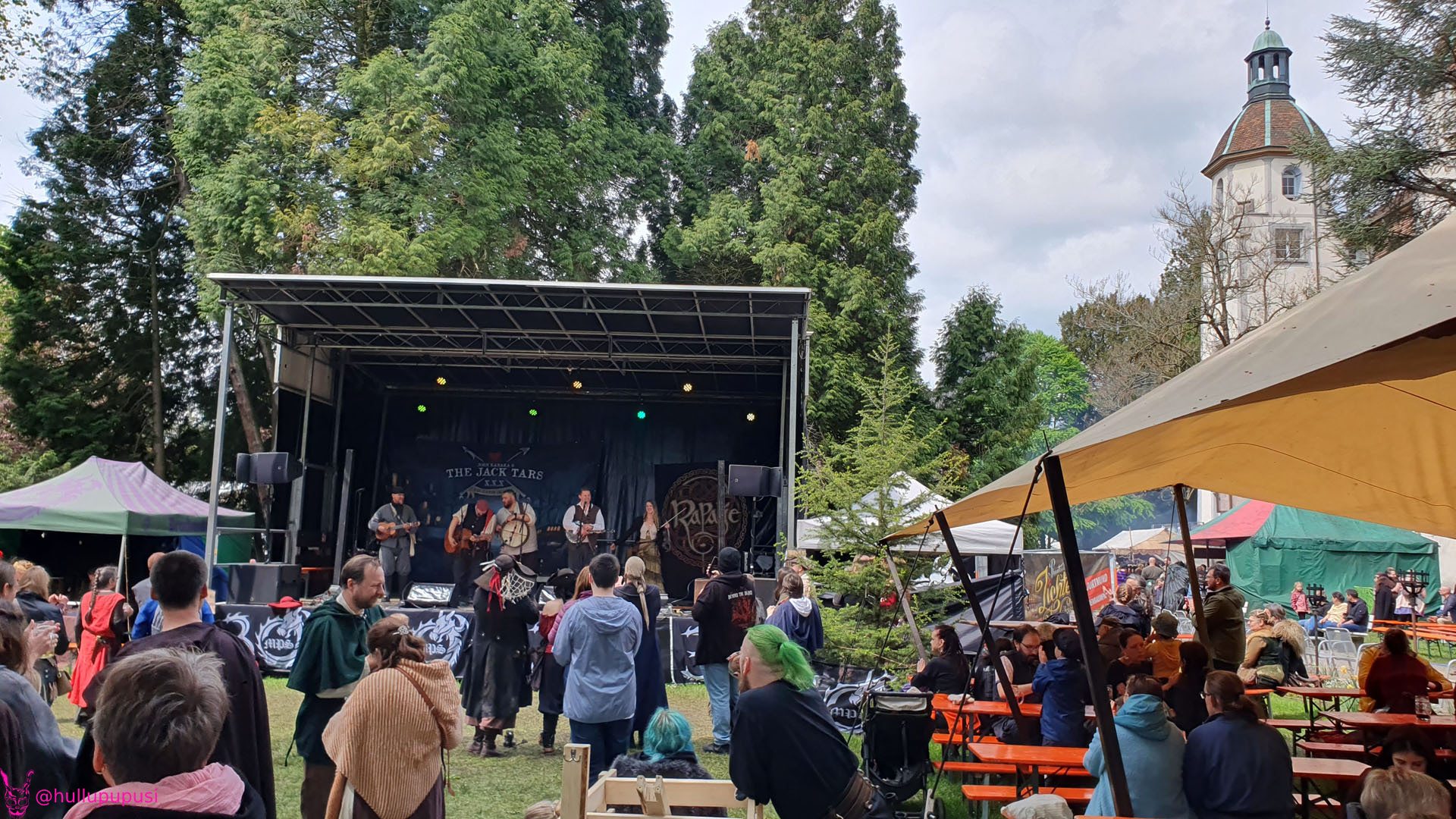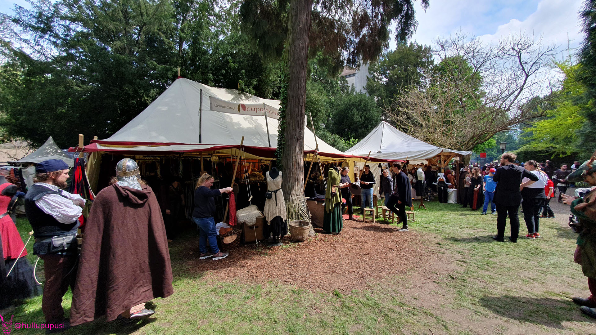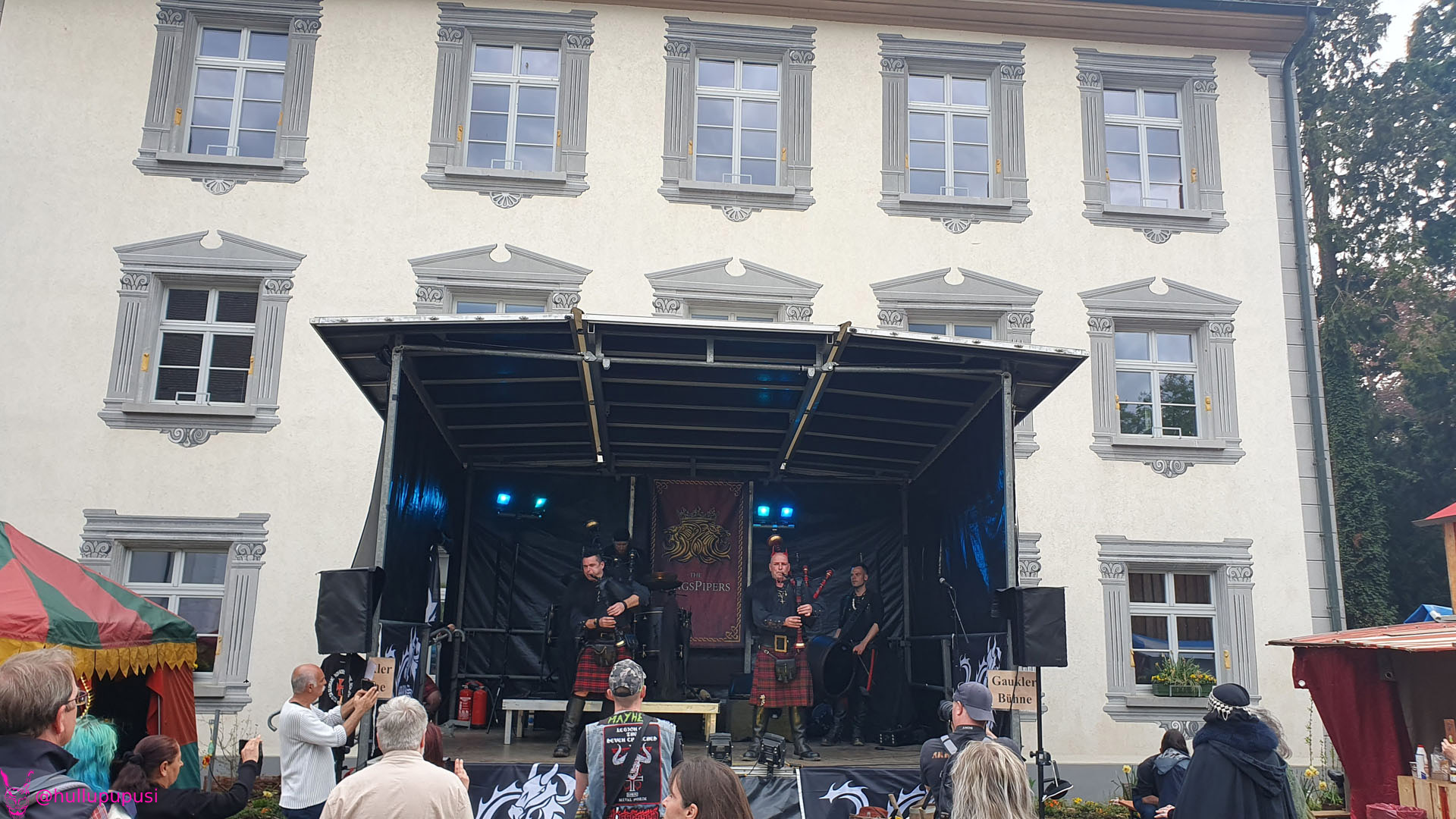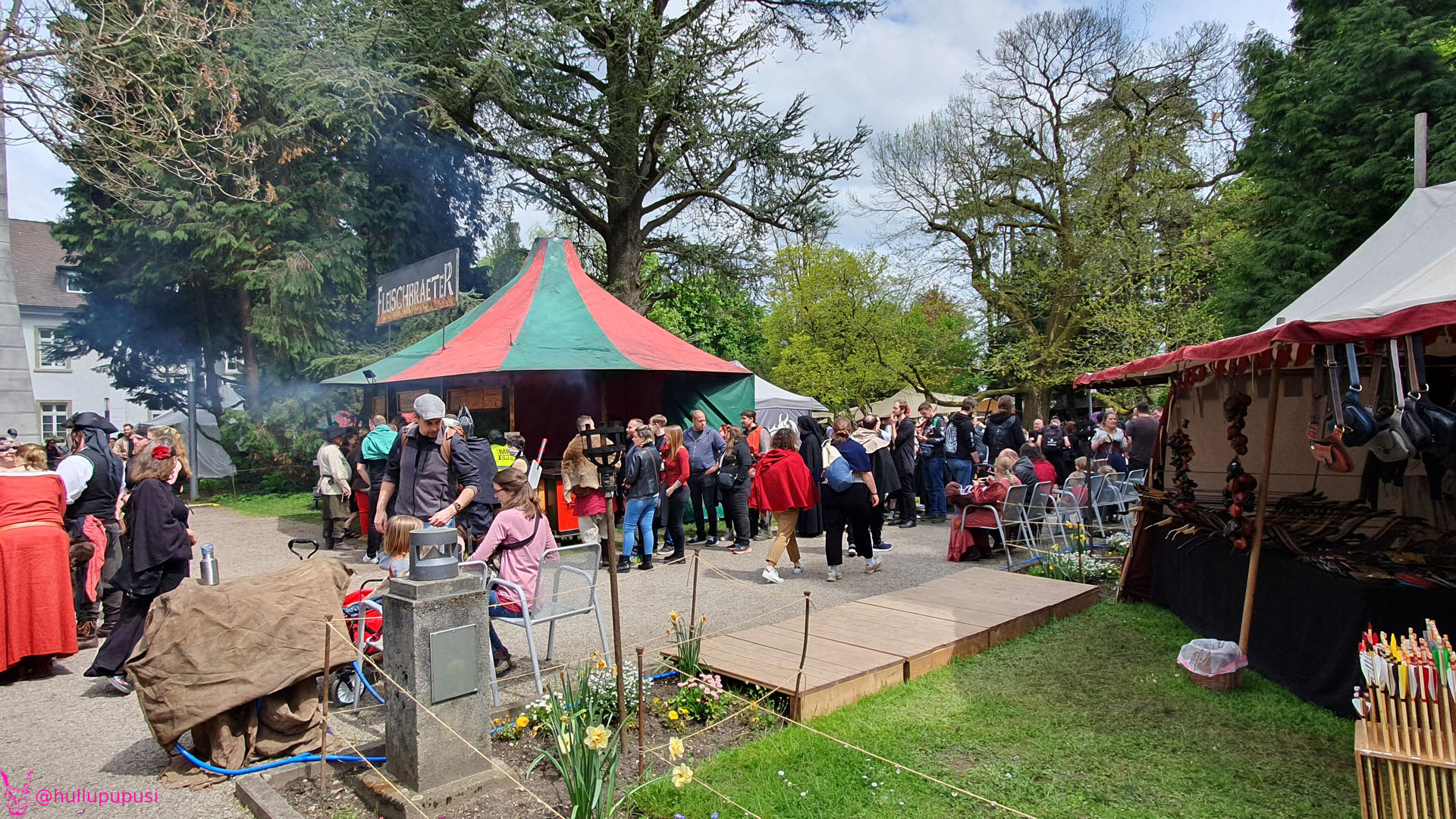 Das Ticket ist gekauft, die Security passiert und ich stehe mitten im Geschehen. Ich sehe mir die Stände an und was sie abieten. Taschen, Kleider, Gewänder, Schmuck, und alles im Mittelalter-Stil. Ich stöbere überall ein wenig, brauche aber effektiv nichts. Es gibt eine Hauptbühne, die aber nicht wirklich gross ist im Vergleich zum Castlefest.