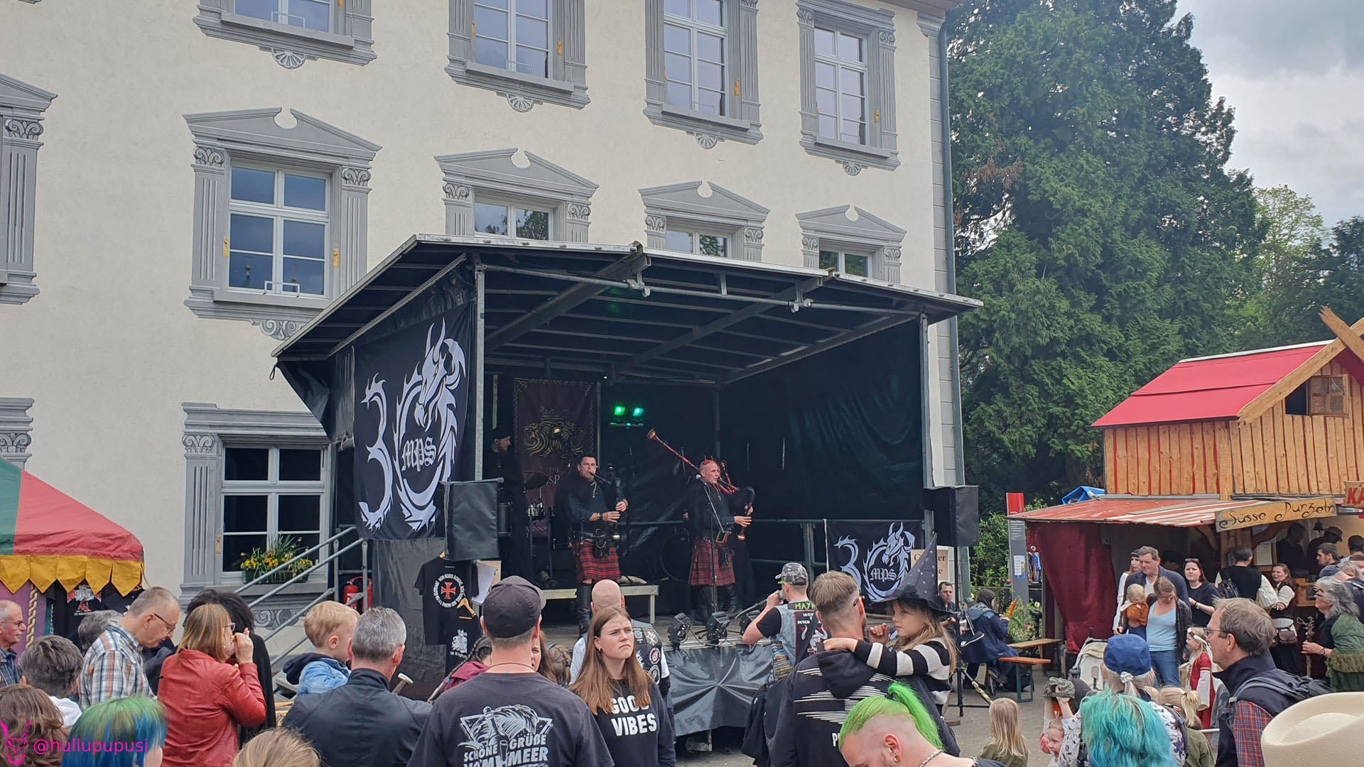 Das Gelände ist schon sehr klein, sehr überschaubar. Dementsprechend hat man alles nach kurzer Zeit schon gesehen. Die Konzerte waren ok, wobei die King’s Piper doch schon die waren, die am meisten Stimmung gemacht haben. Das Essen ist überteuert, Brot und Brotsnacks habe ich aber trotzdem gekauft.