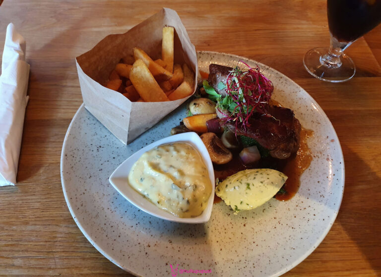 Normalerweise meide ich Cafés wegen einiger fiesen Erfahrungen vor gefühlten Ewigkeiten, aber diesmal wage ich es. Der freundliche Besitzer hilft beim Übersetzen der Karte, und wir kommen ins Plaudern über dies und das. Ruckzuck steht dann auch schon mein Essen vor mir. Sieht nicht nur gut aus, schmeckt auch so! Und der nette Herr wünscht mir tatsächlich “En Guete”; der Koch ist auch Schweizer.